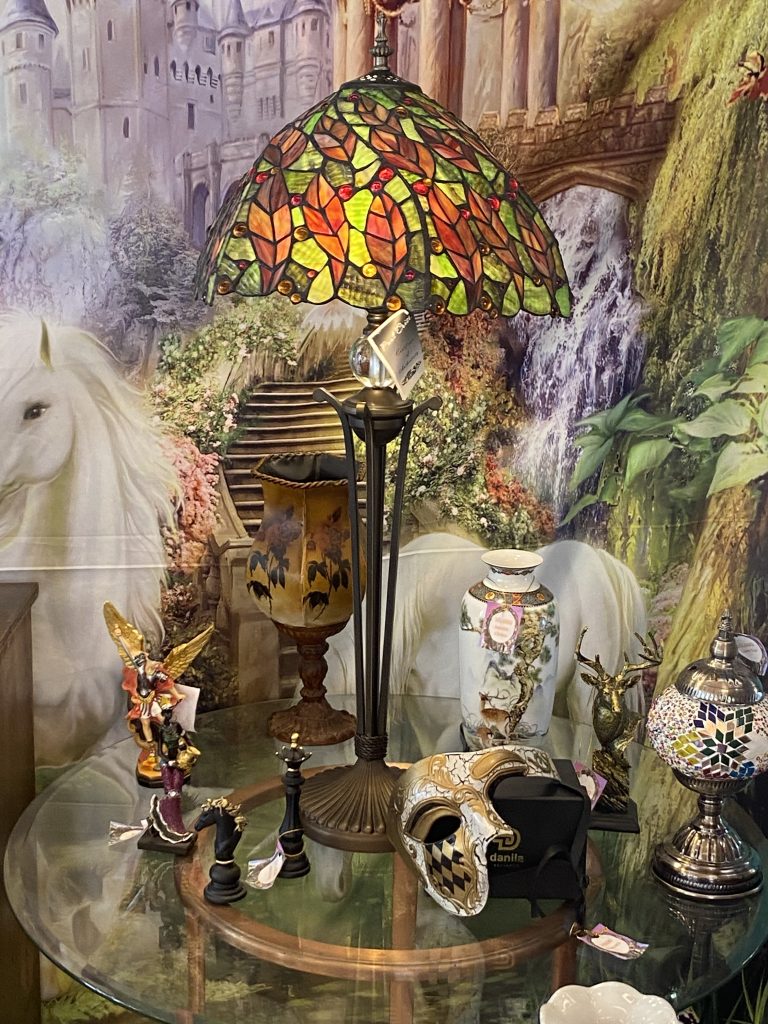 - Además contamos con una tienda de recuerdos, lámparas en un ambiente lleno de cultura, figuras míticas y artísticas, traídas de diferentes partes del mundo.